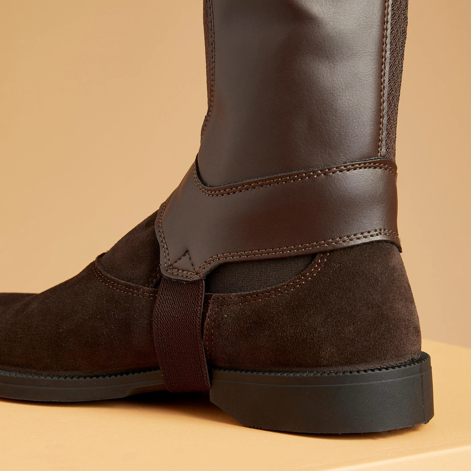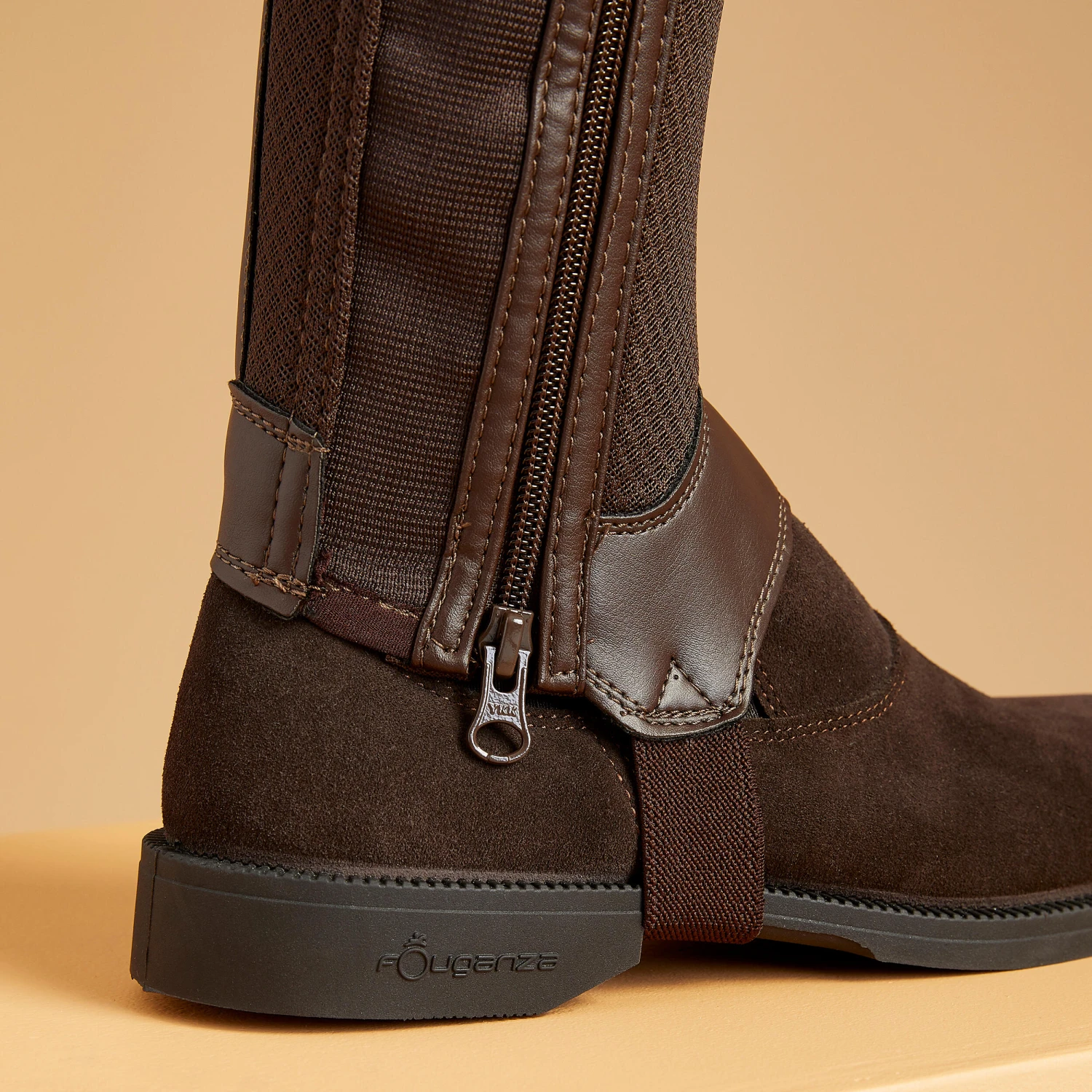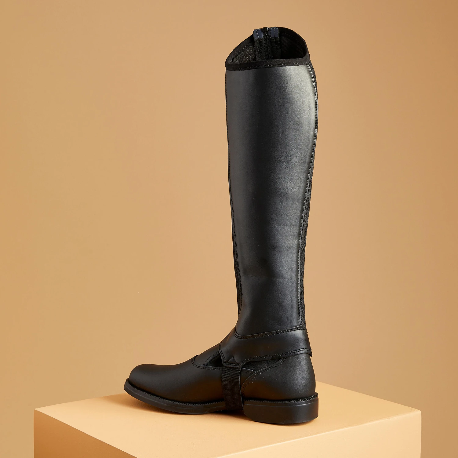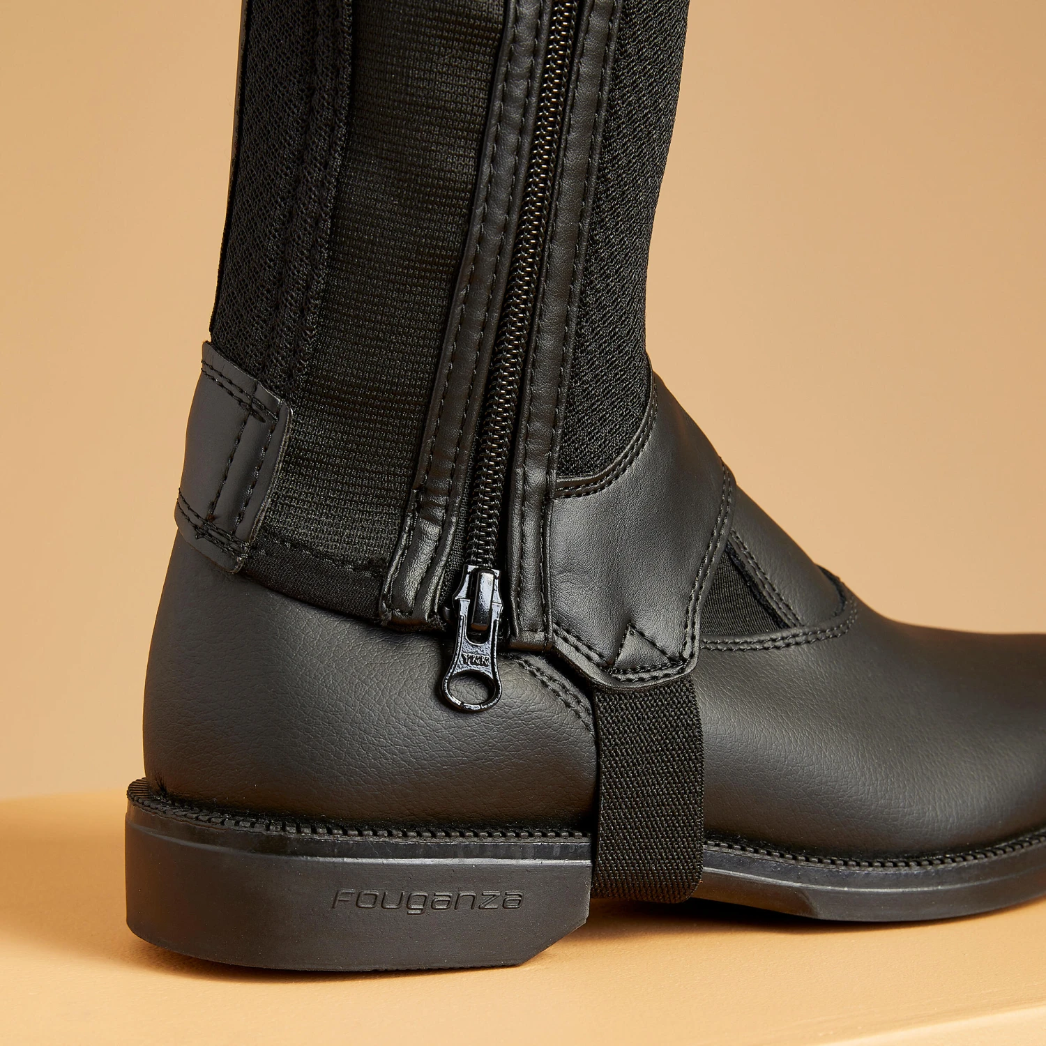 The mesh insert is made in a highly breathable, ventilated material for improved moisture management. Half chaps held in place by an elastic band running under the boot’s sole.